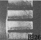 圖28所示硬化齒輪起棱可能是由于超載荷造成的。