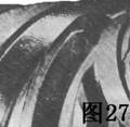 圖27所示齒輪,表面上有波紋,是在硬化的偏軸傘齒輪上產(chǎn)生波紋的典型狀態(tài)。波紋一般出現(xiàn)在高載荷的齒輪上。